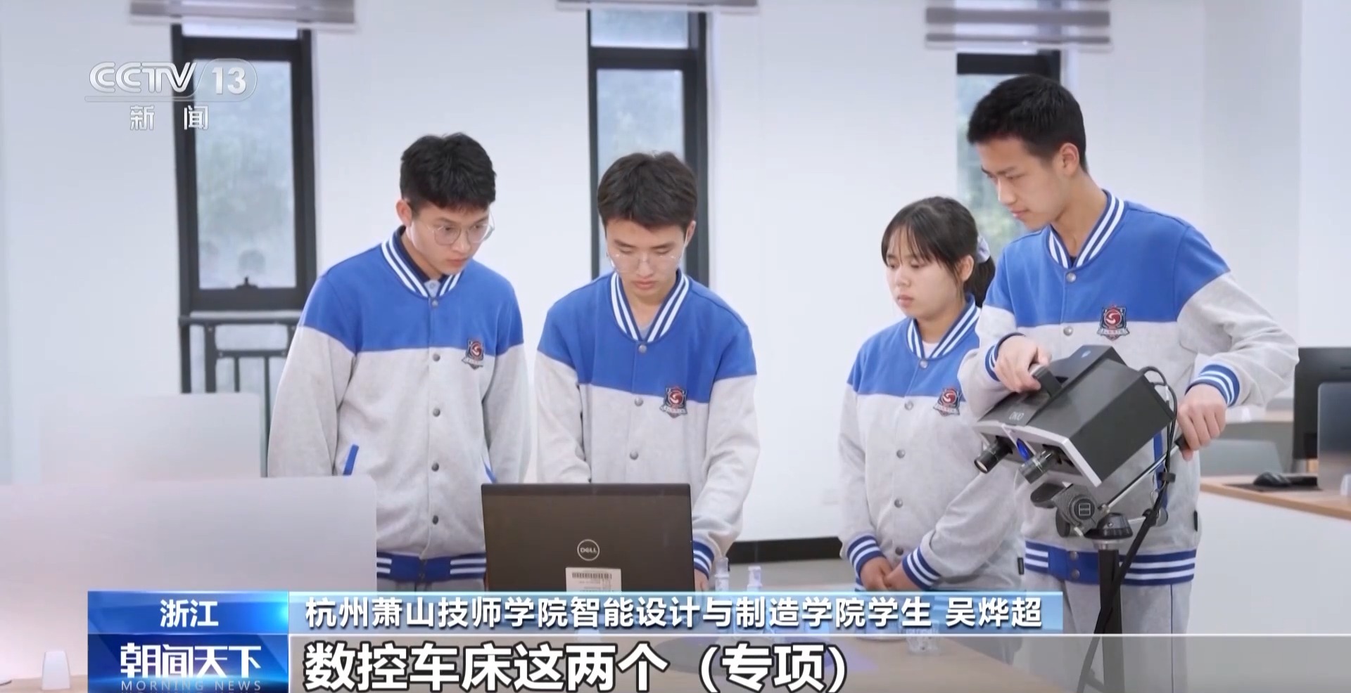 在杭州蕭山技師學院的多軸加工教學工作站里,學生們正在進行實操訓練。體積最大的這臺叫五軸加工中心,專門用于加工航天裝備、精密器械的復雜曲面。一些學生告訴記者,像這樣的大家伙,這兩年學校沒少添置。