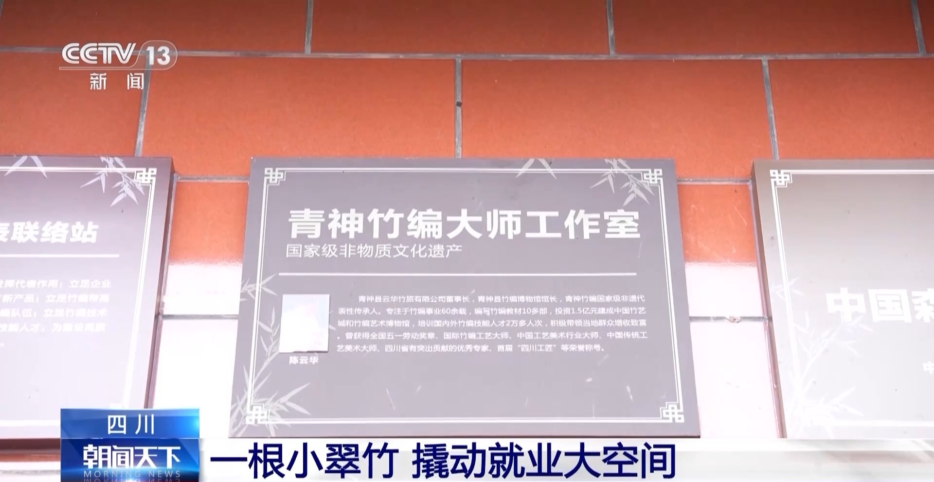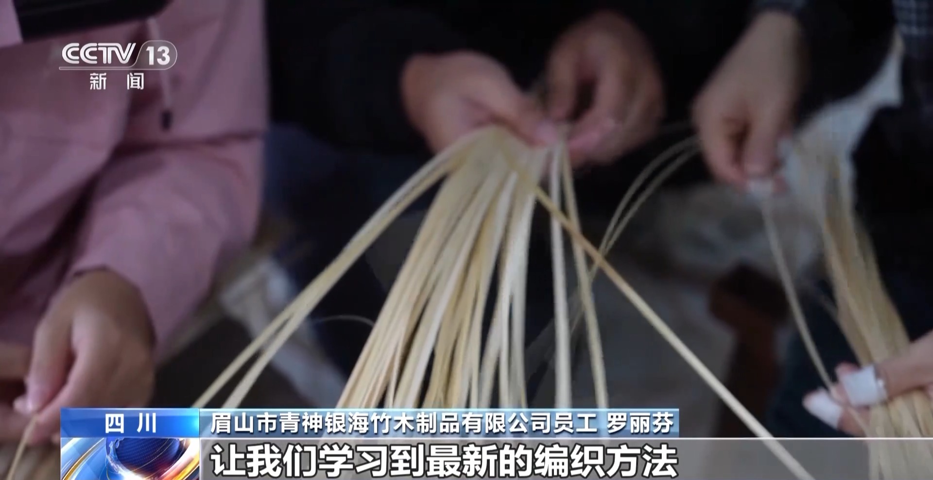 四川省青神銀海竹木制品有限公司員工 羅麗芬:收入每個月能掙4000多元,而且我們還有免費的培訓,讓我們學習到最新的編織方法,比如人字形編織法、菊花形編織,都有不一樣的技巧。