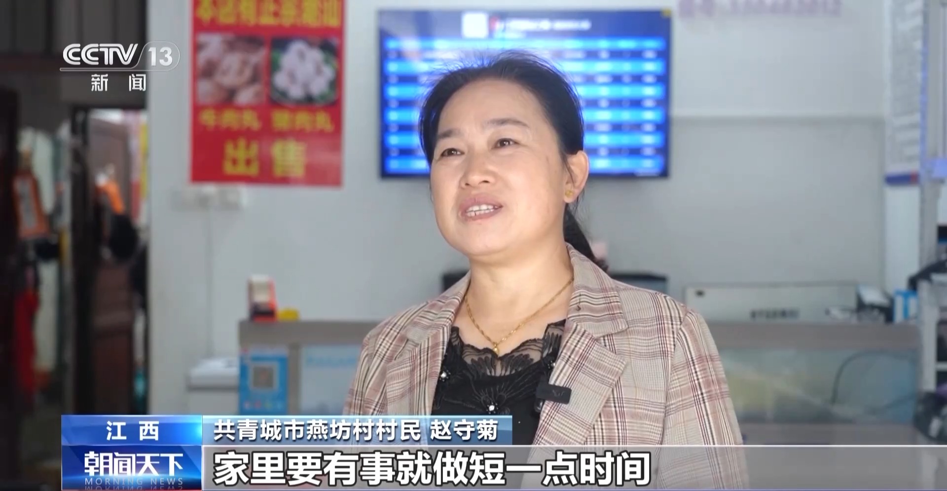 共青城燕坊村村民 趙守菊:賺得到一點小錢,沒事就做長時間一點,家里要有事就做短一點時間。