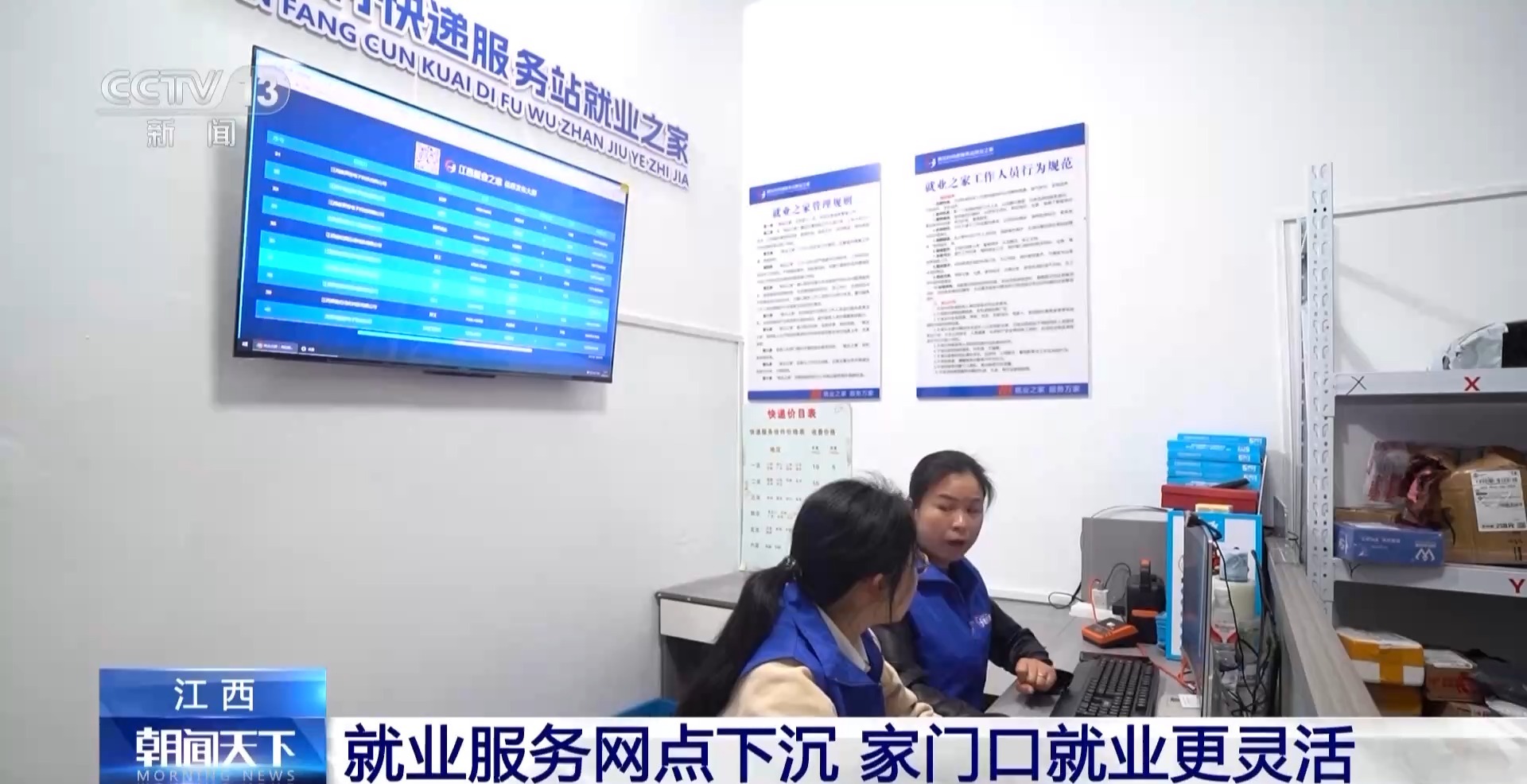 一大早,江西共青城甘露鎮(zhèn)的這個鄉(xiāng)村快遞站里就迎來不少村民。除了拿快遞、寄快遞以外,一些人是奔著招聘信息而來的。