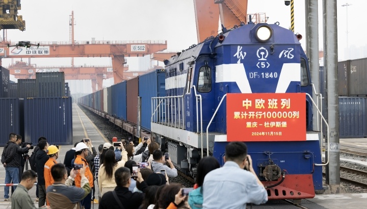 2024年11月15日10時(shí)20分,中歐班列第10萬(wàn)班列車(chē)從重慶發(fā)出