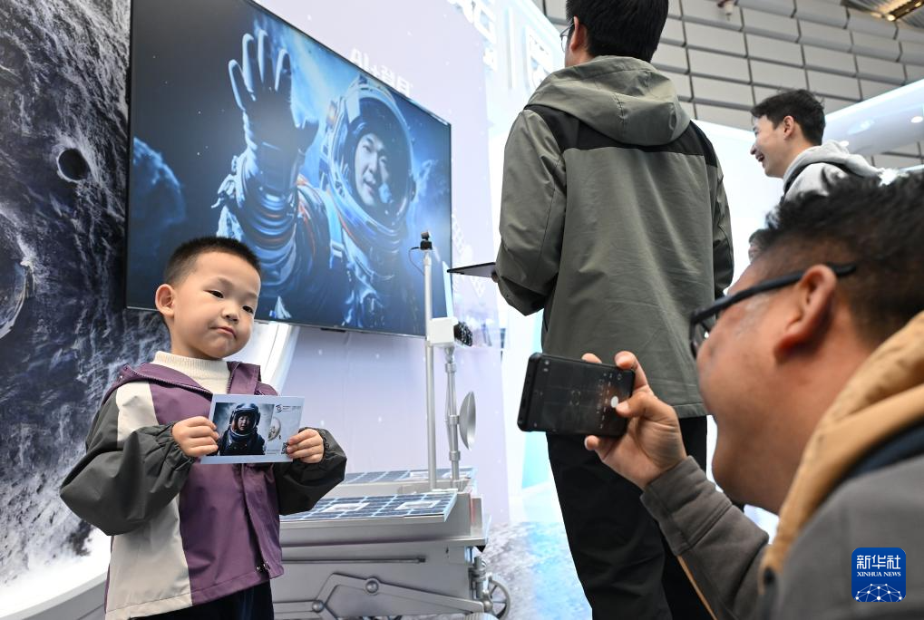 11月19日,在2024年世界互聯(lián)網(wǎng)大會“互聯(lián)網(wǎng)之光”博覽會上,一名小觀眾參與AIGC互動體驗,并同AI系統(tǒng)生成的自己的虛擬照片合影。