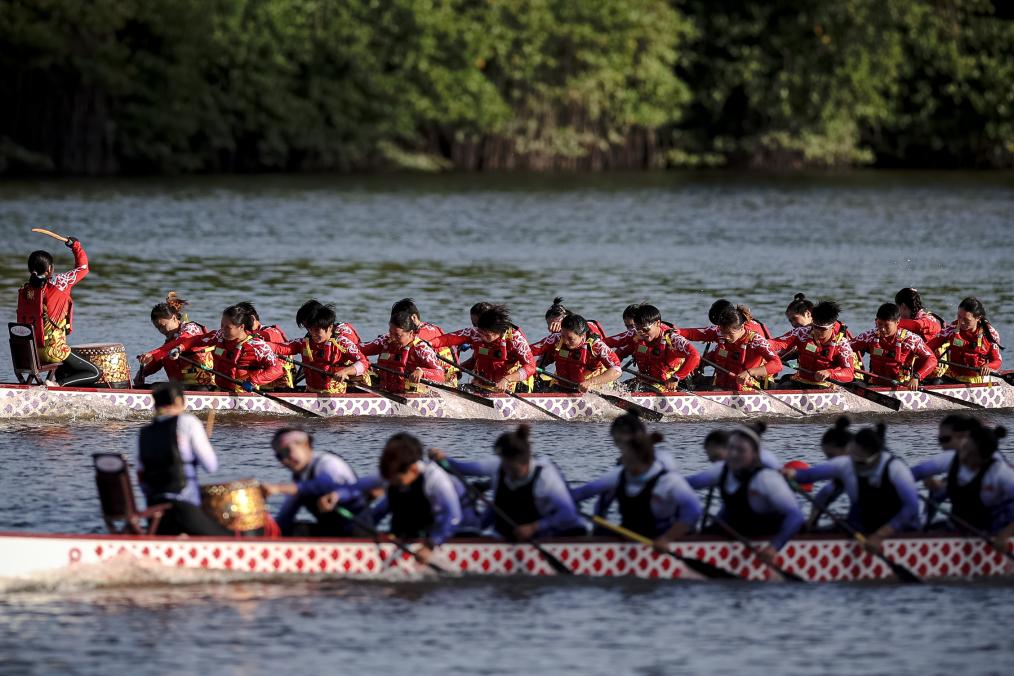 當(dāng)天還進(jìn)行了龍舟項(xiàng)目的多場(chǎng)決賽,廣東隊(duì)曾德林奪得標(biāo)準(zhǔn)龍舟混合直道競(jìng)速200米一等獎(jiǎng)。曾多次斬獲國(guó)際龍舟賽事冠軍的他表示,在三亞這些天就像參加一場(chǎng)全民族的家庭聚會(huì),與其他隊(duì)伍也會(huì)相互加油、打氣,比賽氛而融洽。