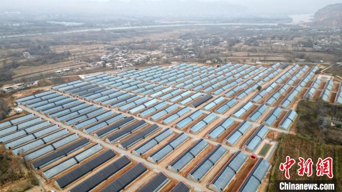 11月21日,航拍甘肅省積石山縣大河家鎮(zhèn)韓陜家村集中安置點(diǎn)后續(xù)產(chǎn)業(yè)——高效節(jié)能日光溫室蔬菜大棚。九美旦增 攝