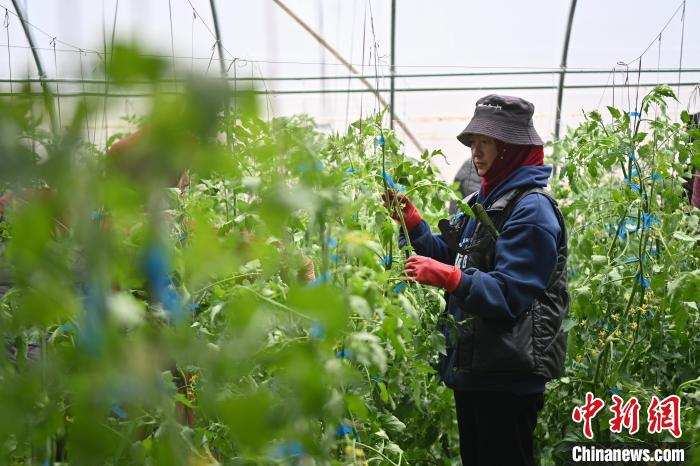 馬芬蓮和工友們忙著給番茄苗整枝打杈,她額頭上因地震房屋倒塌留下的疤痕仍清晰可見。與記者交流時(shí),不時(shí)有同村婦女打來視頻電話咨詢種植問題。
