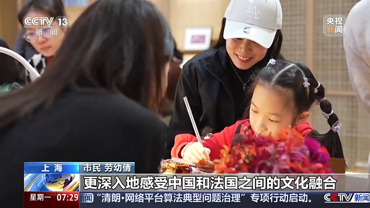 上海市民 勞幼倩:這邊有很多體驗區(qū)域,讓小朋友也有動手能力,更深入地感受中國和法國之間的文化融合。