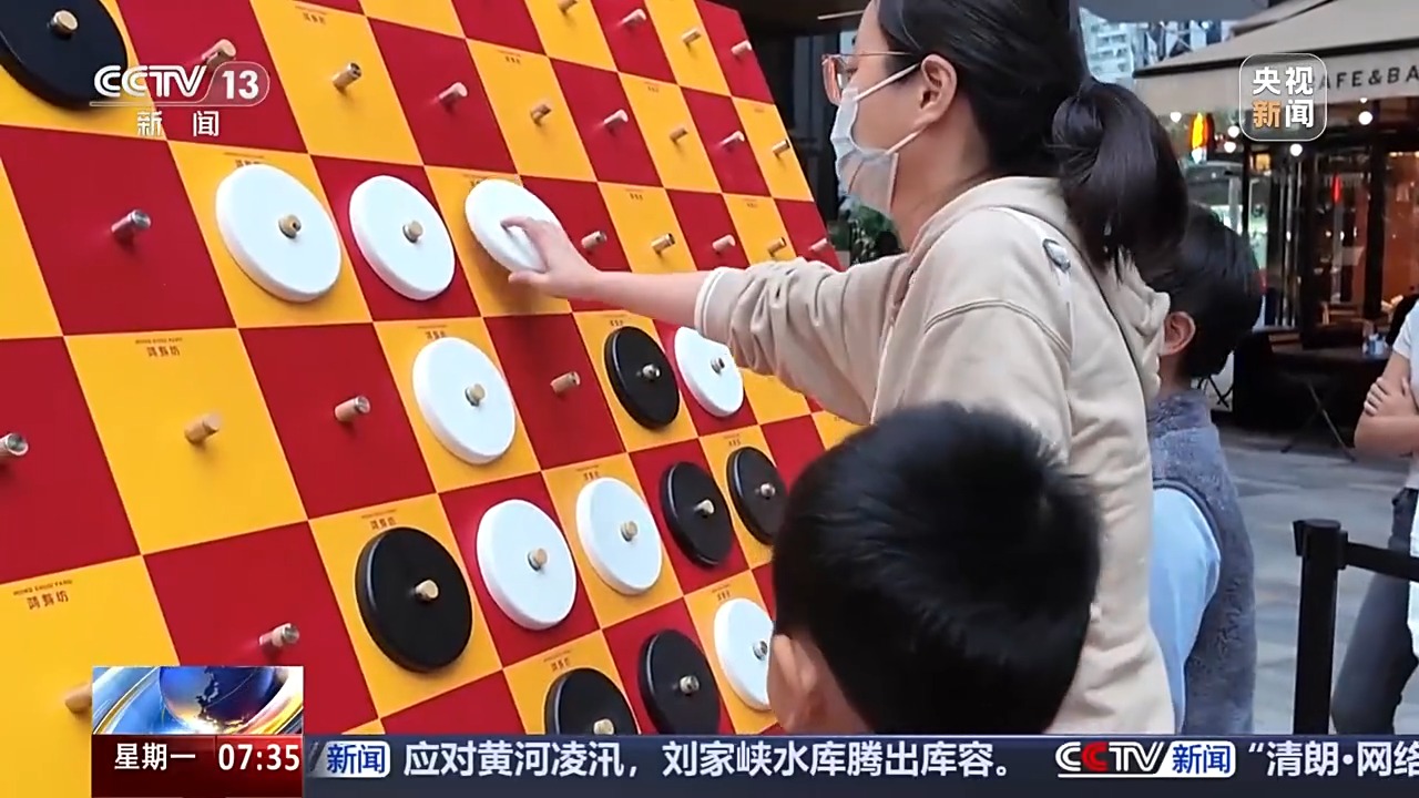 而上海的另一處熱門打卡地——“鴻壽坊”,則用煙火氣吸引著市民。在中心廣場上,一場“街坊擂臺”正在舉行。飛行棋、呼啦圈,簡單有趣的運動吸引了許多參與者。