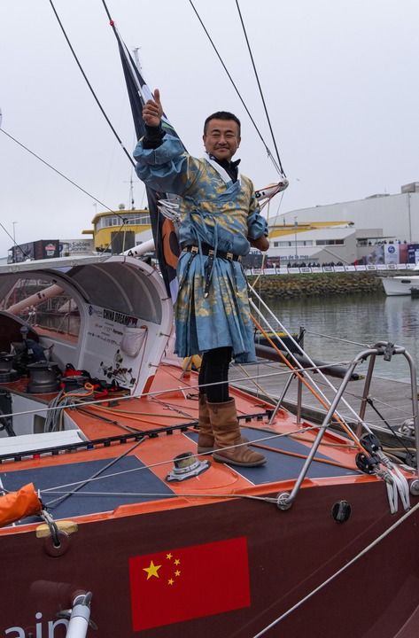 徐京坤在旺代環(huán)球帆船賽出發(fā)前進(jìn)行準(zhǔn)備工作