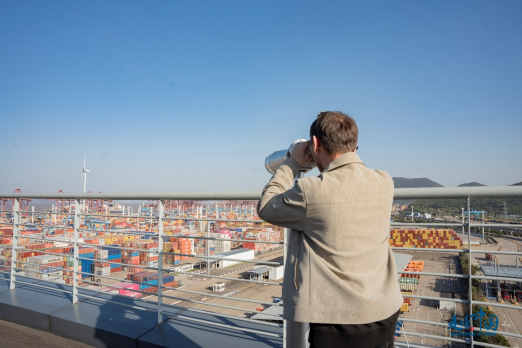 記者們站在觀景平臺(tái),通過望遠(yuǎn)鏡親眼見證了全球最繁忙集裝箱港口之一的現(xiàn)代化作業(yè),他們爭相與壯觀的碼頭場(chǎng)景合影留念。來自哈薩克斯坦《誠實(shí)報(bào)》社會(huì)文化部主任納烏雷茲別克·薩爾沙耶夫在接受環(huán)球網(wǎng)記者采訪時(shí)說道“寧波舟山港的運(yùn)作效率和智能化管理令人贊嘆,它無疑是全球物流行業(yè)的標(biāo)桿?!?/p>