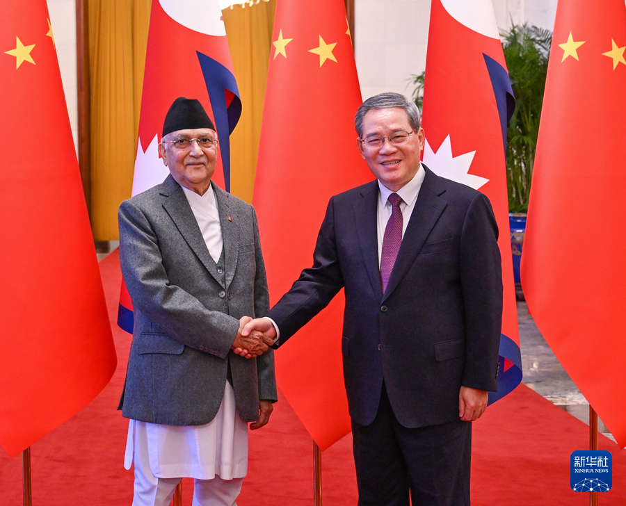 國務(wù)院總理李強(qiáng)12月3日上午在北京人民大會堂同來華進(jìn)行正式訪問的尼泊爾總理奧利舉行會談。