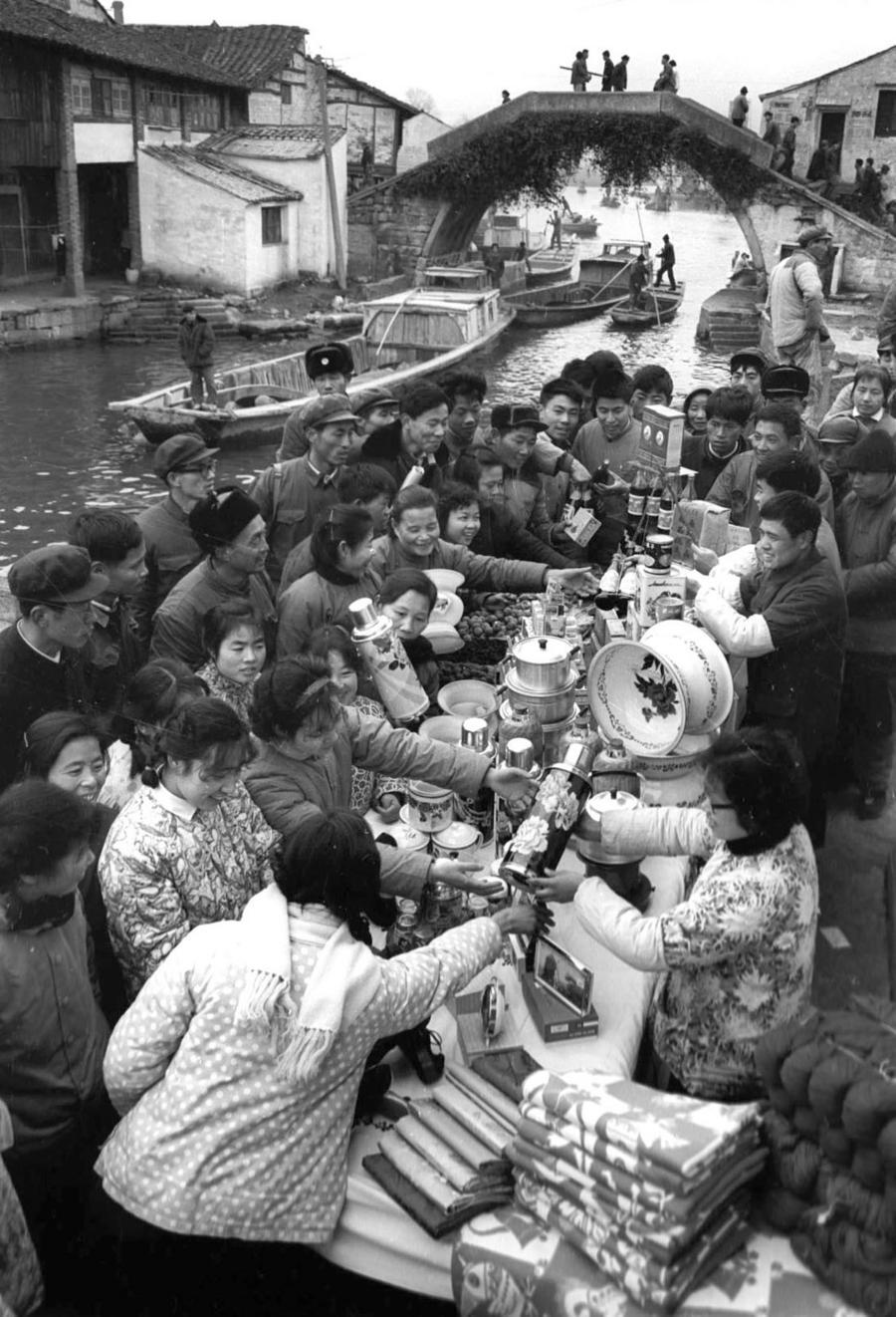 1980年,浙江紹興柯橋農(nóng)民在購買年貨。 新華社發(fā)