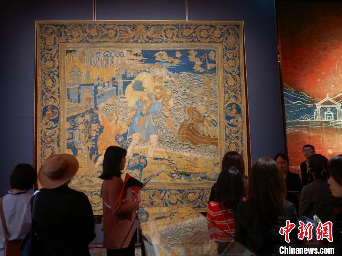 11月15日,澳門保利美高梅博物館正式開幕。圖為觀眾參觀初代澳門總督馬士加路也所訂制的掛毯。中新社記者 鄭嘉偉 攝