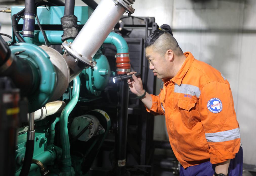 發(fā)電班班長張冬在對發(fā)電機進行巡視檢查(12月1日攝)。新華社記者 黃韜銘 攝