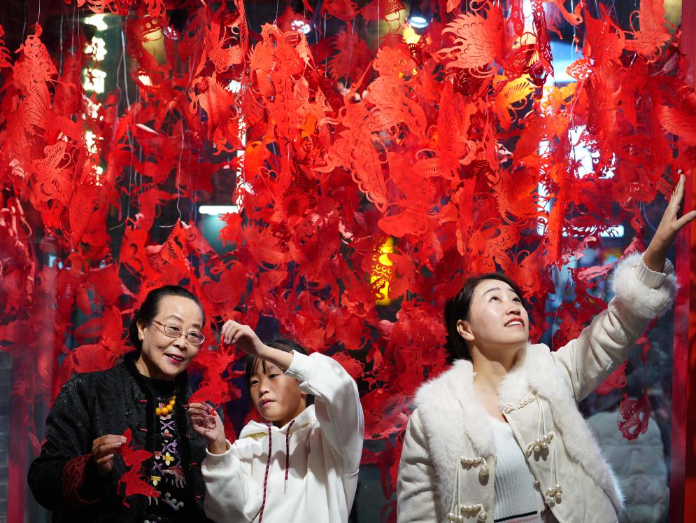 11月23日,市民在石家莊市新華區(qū)灣里廟步行街參觀非遺工作室。河北省石家莊市著力培育夜經(jīng)濟新場景新業(yè)態(tài),打造集美食、娛樂、購物、非遺等于一體的夜經(jīng)濟消費圈,豐富市民夜生活。新華社發(fā)(閆志國攝)