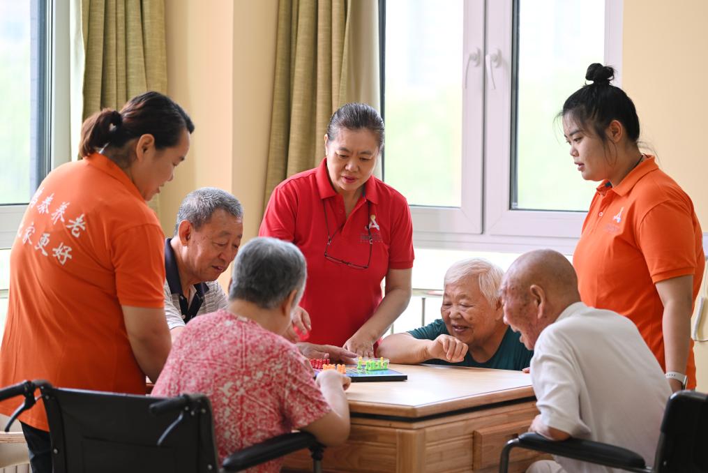 老人們在天津西青區(qū)第一養(yǎng)老院的棋牌室內活動。新華社記者李然 攝