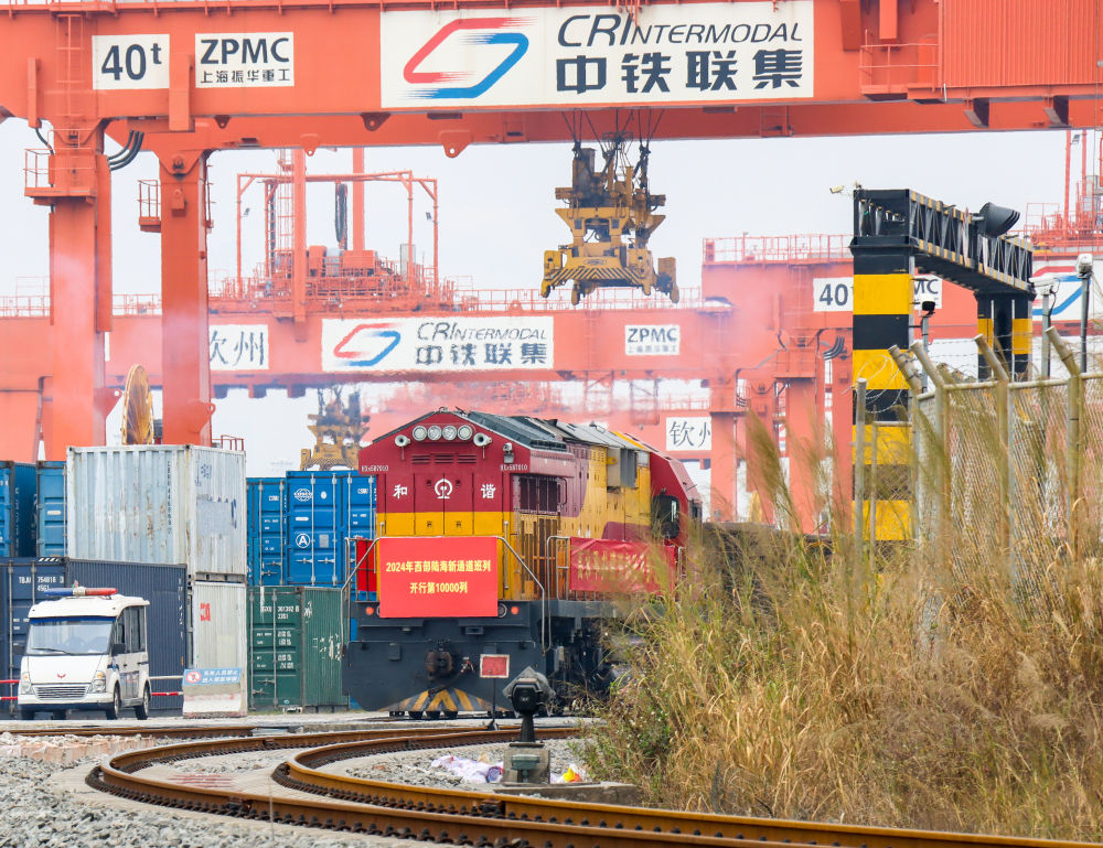 2024年西部陸海新通道班列第10000列發(fā)車。(北部灣港集團供圖)