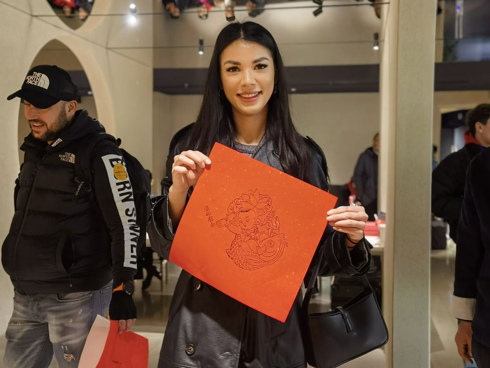 2024年12月31日晚,斯洛伐克游客在“上海新春第一游”體驗(yàn)非遺拓印。新華社記者 陳愛平 攝