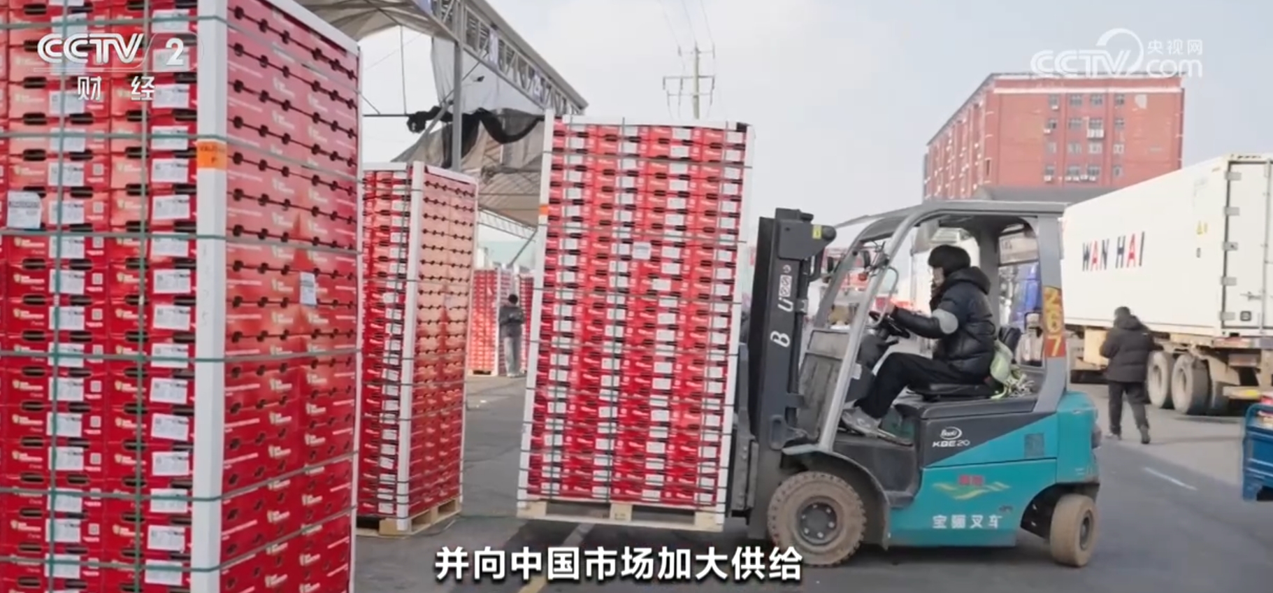 這家果蔬市場(chǎng)最近迎來(lái)了進(jìn)口水果的銷售高峰。在車?yán)遄咏灰讌^(qū)域,車輛和人員熙熙攘攘。最近每天都要從早上七點(diǎn)營(yíng)業(yè)到晚上十一點(diǎn)左右。從現(xiàn)在到春節(jié)期間,將是這里一年中最繁忙的時(shí)段。