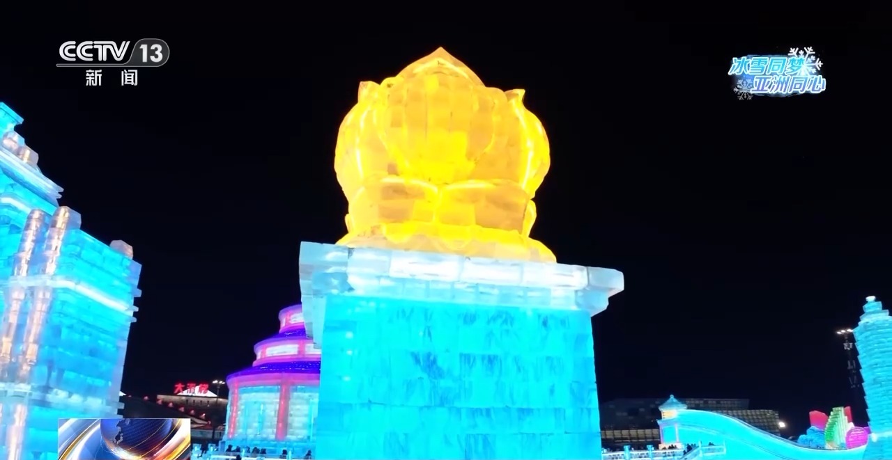 本屆冰雪大世界園區(qū)設計和建設充分融入亞冬會元素,園區(qū)將亞奧理事會成員的地標景觀,以冰雪形式呈現(xiàn)出來,吸引了不少國內外游客前來打卡。