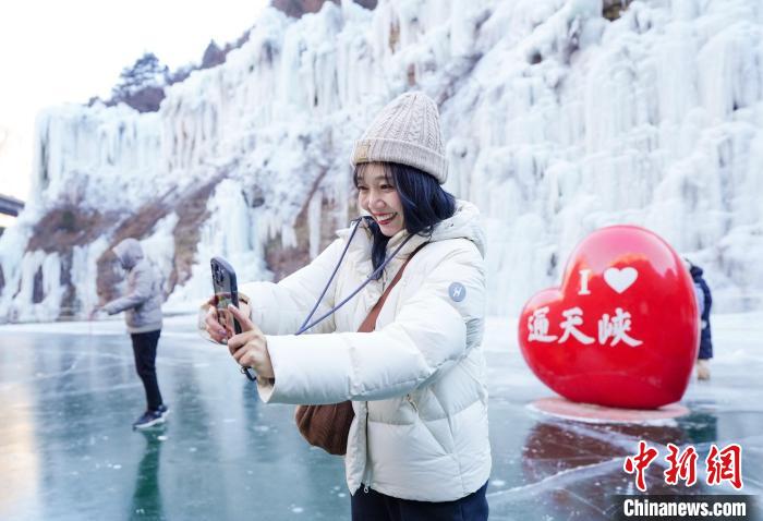 日本旅游達人知香在山西長治通天峽景區(qū)“打卡”。 郭峰 攝