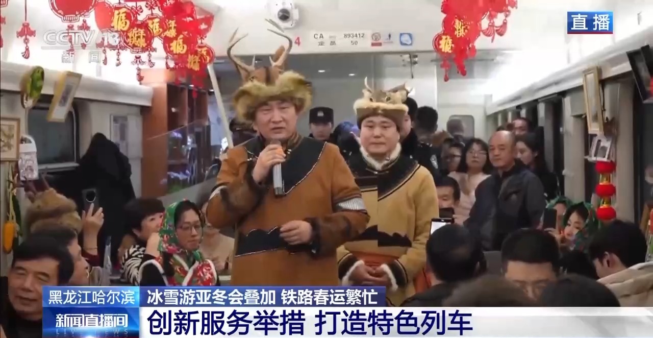 春運期間還會繼續(xù)開行非遺列車,比如在哈爾濱開往漠河的列車上,就會邀請鄂倫春族非遺傳承人為游客展示刺繡、面塑、樺皮畫等非遺內(nèi)容。讓游客在暢游冰雪的同時,感受“非遺春節(jié)”。