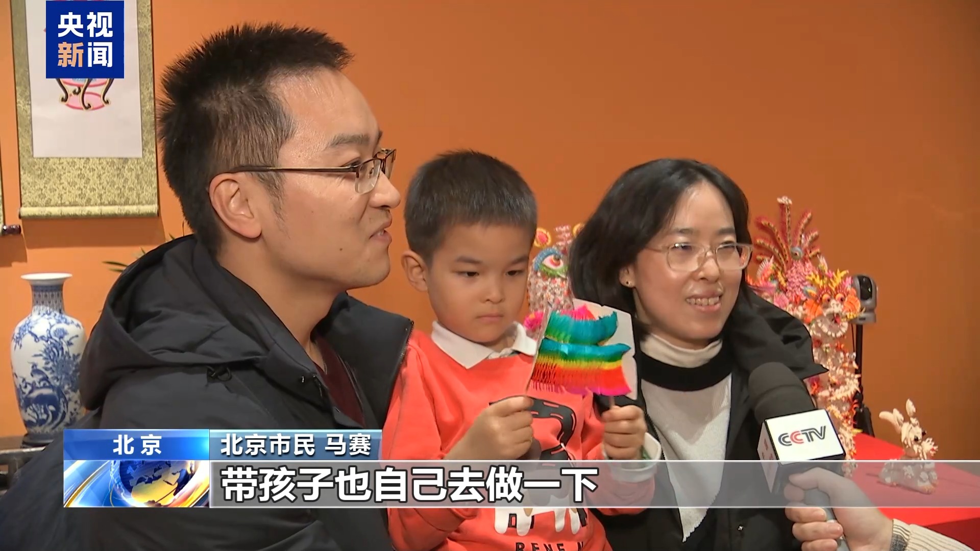 北京市民 馬賽:每一個都很精美,我們想回家之后帶孩子也去做一下,讓小孩體驗一下我們中國傳統(tǒng)過年方式。