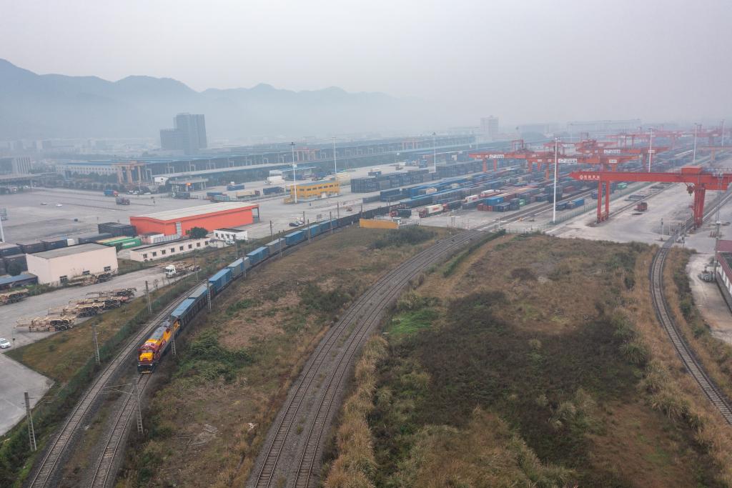 1月17日,一列滿(mǎn)載糖果等歐洲商品的中歐班列年貨專(zhuān)列順利抵達(dá)重慶團(tuán)結(jié)村中心站。新華社記者 黃偉 攝