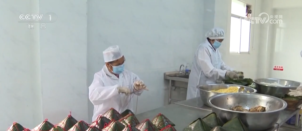 在廣西賓陽,各年貨加工廠抓緊時(shí)間制作“甘棠三寶”,也就是大粽、扣肉和粉利。將蒸過的粽葉擺放好,按順序加入餡料,壓實(shí)包好后,再一起放入大鍋中進(jìn)行熬煮,這就是大粽。將精選的五花腩肉及相關(guān)配料進(jìn)行腌制、油炸,這就是扣肉。蒸熟的粉利切塊,淋上花生油和醬油,加一勺酸辣醬就可享用。