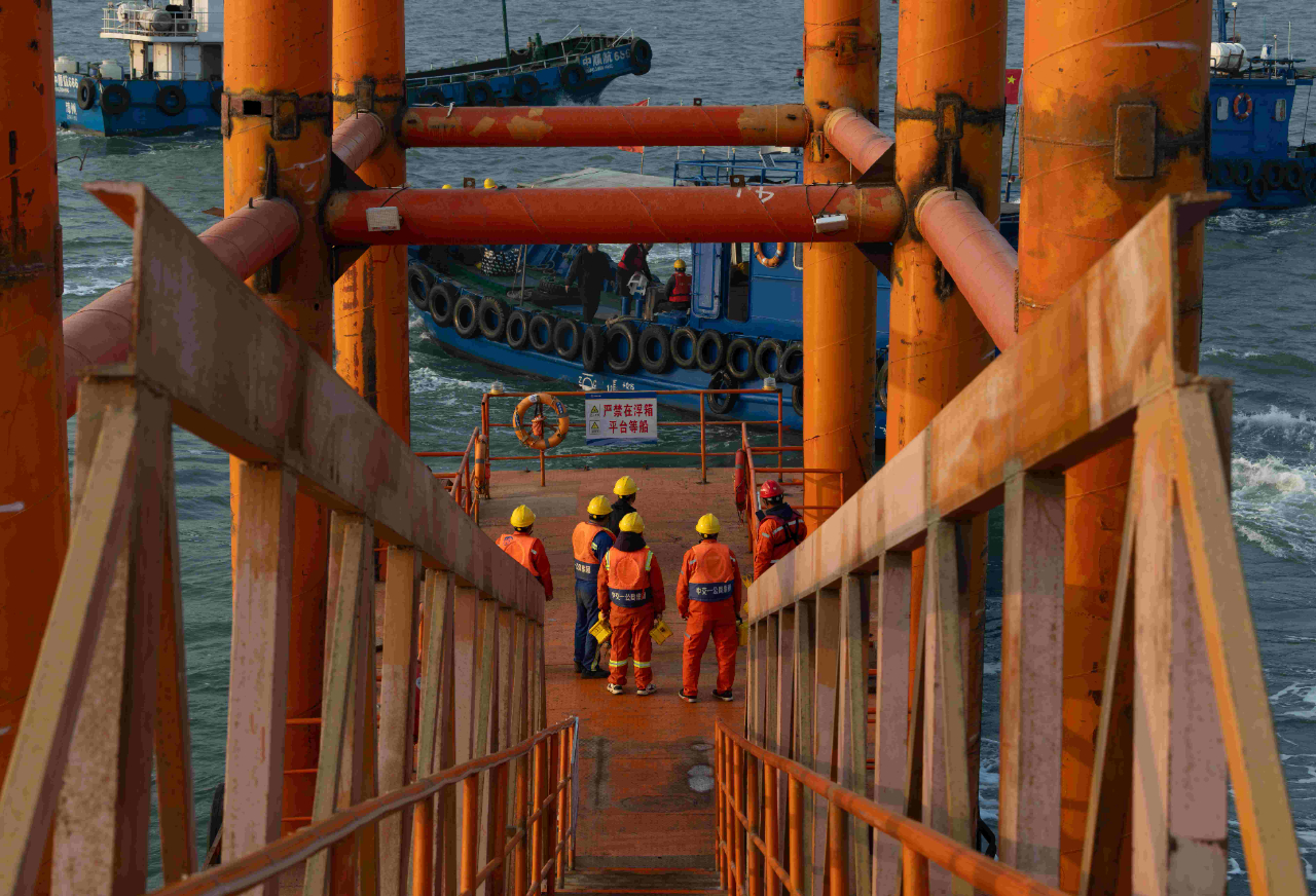 梁芝敬和工友們工作的位置在離岸2海里的海上。一座總面積5萬多平方米的海上平臺,構(gòu)成了建設(shè)者們生活和工作的海上空間。工人們加班建設(shè)的劉五店航道橋,是廈金大橋(廈門段)關(guān)鍵控制性工程,全長1948米,是福建省內(nèi)最大跨徑橋梁,也是福建省首座全離岸式海中懸索橋。春節(jié)前,項目部要完成沉井系梁6000方以及主塔套箱6640方封底混凝土澆筑任務(wù)。為此,梁芝敬和工友們需要不間斷倒班作業(yè),以保障工程任務(wù)能夠如期完成。而記者采訪時,距離梁芝敬上一次離開海上平臺,已經(jīng)過去57天。