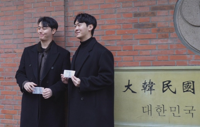 2025年1月,韓國(guó)游客在位于上海馬當(dāng)路的大韓民國(guó)臨時(shí)政府舊址門口拍照打卡。新華社記者張夢(mèng)潔 攝