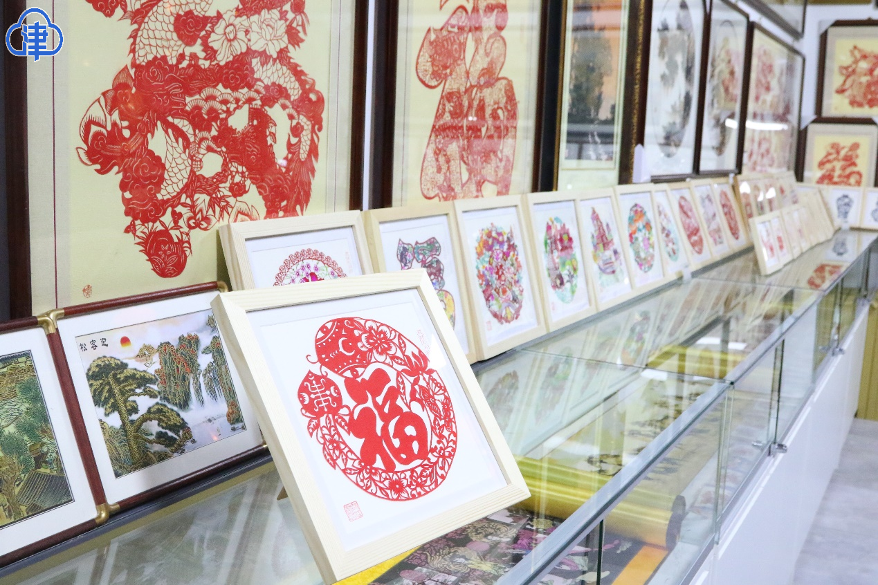 在戲樓對(duì)面,楊柳青剪紙世家第四代傳人,郝桂芬的剪紙鋪吸引了眾多游客的駐足。郝桂芬既是店鋪的“當(dāng)家人”,也是非遺剪紙項(xiàng)目的代表性傳承人。楊柳青剪紙的技法,既需要用北方剪刀剪出輪廓,又需要用南方刻刀雕飾細(xì)節(jié)。郝桂芬的獨(dú)門絕技——染色剪紙,是先用白紙剪出樣式,再用楊柳青年畫的技法上色。她的剪紙作品包括花鳥(niǎo)魚(yú)蟲(chóng)、神話故事、喜慶吉祥圖案等,深受游客喜愛(ài)。在這里,游客們不僅可以購(gòu)買到精美的剪紙作品,還能在學(xué)習(xí)體驗(yàn)剪紙技法,感受指尖上的古老藝術(shù)。