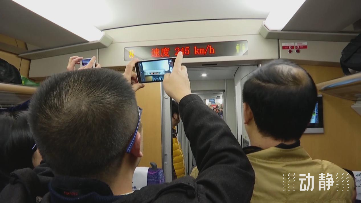 這趟列車的設(shè)計(jì)時速為250公里,開車不到10分鐘,時速就達(dá)到了245公里,乘客們紛紛用手機(jī)和相機(jī)記錄著顯示器上不斷攀升的車速。