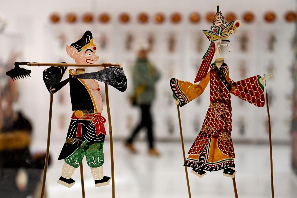 1月7日,游客在非遺年貨集市上了解皮影技藝。新華社記者 鄒競(jìng)一 攝