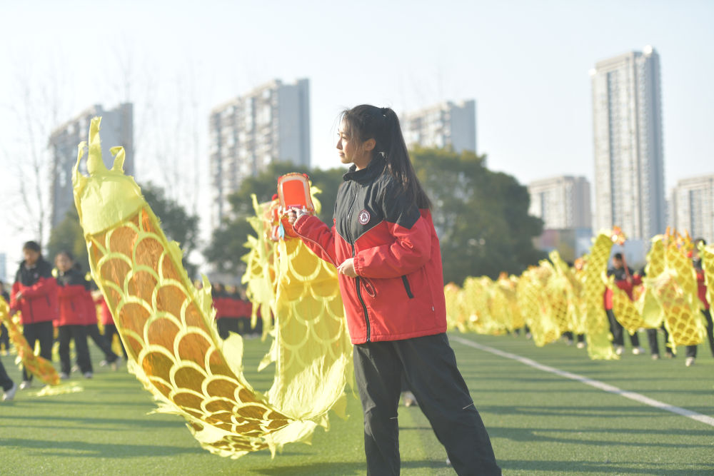 舞彩帶龍成為了這所學(xué)校的特色課間操