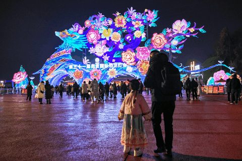 這是第31屆自貢國際恐龍燈會現(xiàn)場(1月27日攝)。
