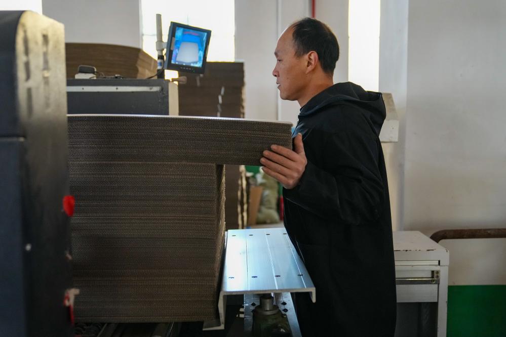 春節(jié)前后,位于大瑤鎮(zhèn)的瀏陽市凱洋包裝廠里,印刷、裁剪、折疊、黏合……自動化生產(chǎn)線每天下線5萬多個(gè)紙箱。