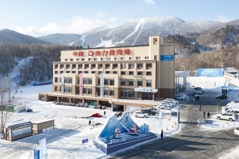 這是1月16日拍攝的位于亞布力滑雪場(chǎng)內(nèi)的第九屆亞冬會(huì)雪上賽區(qū)一角(無人機(jī)照片)。新華社記者謝劍飛攝