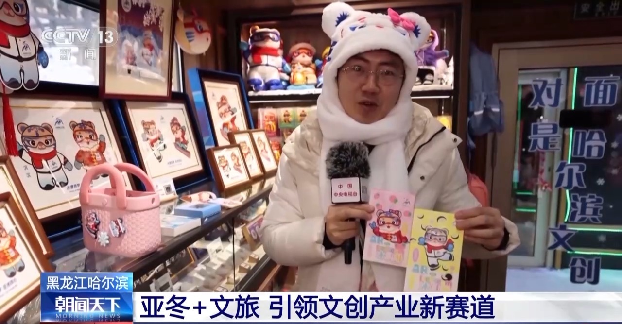 總臺(tái)記者 張程:我現(xiàn)在就位于中央大街二號(hào)的亞冬文創(chuàng)產(chǎn)品專營店,隨著亞冬會(huì)的腳步漸行漸近,同時(shí)現(xiàn)在本就是哈爾濱的冰雪文旅旺季,這里幾乎每天都是游人如織、摩肩接踵。而其中有很多爆款文創(chuàng)產(chǎn)品,現(xiàn)在已經(jīng)幾乎賣到脫銷?! ?img alt="" src="./W020250207709257686487.jpg" OLDSRC="W020250207709257686487.jpg" />