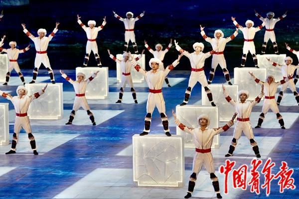 2月7日,哈爾濱,亞冬會開幕式上表演的文藝節(jié)目。中青報·中青網(wǎng)記者 李雋輝/攝