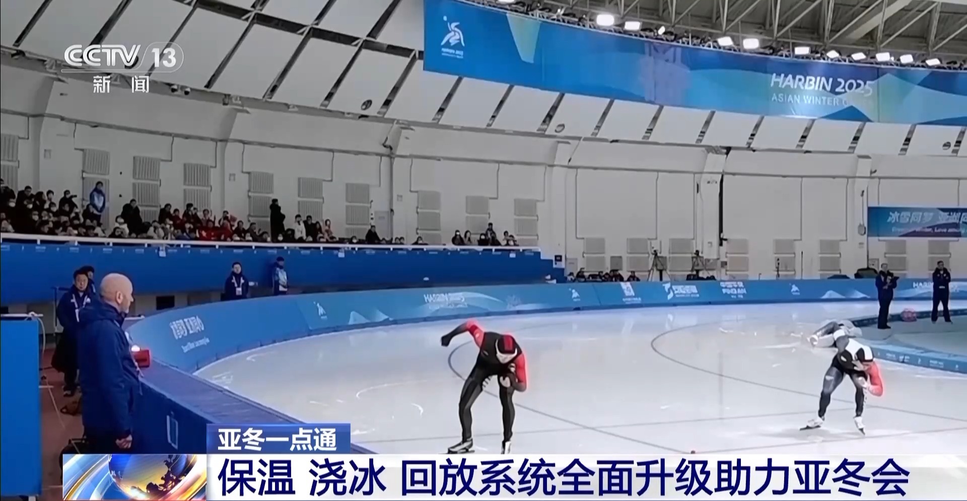總臺(tái)記者 季熠非:位于哈爾濱市的黑龍江省冰上訓(xùn)練中心速滑館,今天在這里進(jìn)行的是亞冬會(huì)女子500米、男子5000米和女子短距離團(tuán)體追逐的三項(xiàng)比賽。