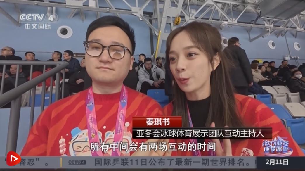 亞冬會(huì)冰球體育展示團(tuán)隊(duì)互動(dòng)主持人邢小川介紹,他們主要是帶動(dòng)所有觀眾朋友的情緒,給大家營(yíng)造濃郁的現(xiàn)場(chǎng)氛圍,可以通過大屏幕互動(dòng),給大家?guī)砀玫挠^賽體驗(yàn)。