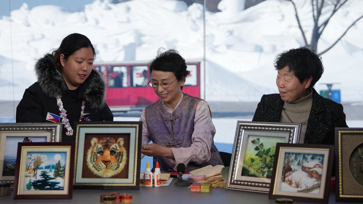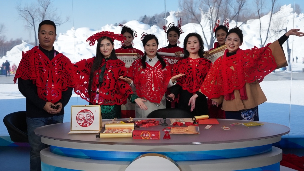 參加“當(dāng)亞冬會遇上‘非遺年’”人文交流活動的中外嘉賓在哈爾濱太陽島雪博會CMG演播室同慶新春