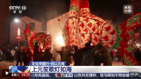 中國社會(huì)科學(xué)院民族文學(xué)研究所研究員、北京民間文藝家協(xié)會(huì)副主席 毛巧暉:相傳在漢代我們就有過元宵節(jié)的習(xí)俗,但當(dāng)時(shí)是叫“正月十五”或者叫“正月望”。這個(gè)燈,可能和中國上古對(duì)火的崇拜有很大的關(guān)系,后來也跟傳入的佛教文化結(jié)合,逐步形成了觀燈賞燈的習(xí)俗。燈又和中國的“丁”是諧音,寓意吉祥,添丁進(jìn)口,人丁興旺。