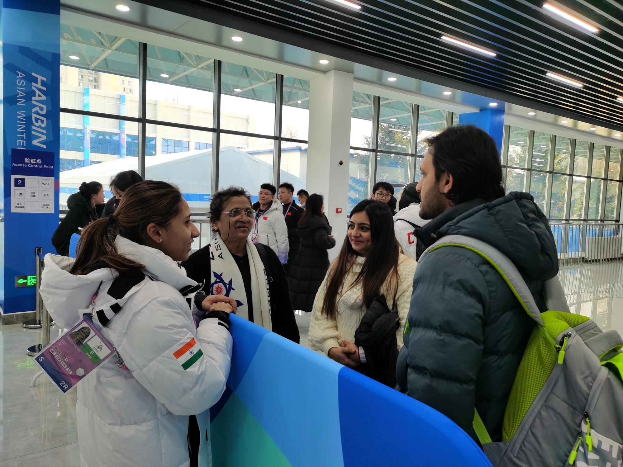 印度速度滑冰選手詩(shī)魯?shù)俚募胰?,也選擇這次亞冬會(huì)的機(jī)會(huì),來(lái)到哈爾濱與她團(tuán)聚。詩(shī)魯?shù)俚慕憬惆涂说俑嬖V記者,印度的滑冰訓(xùn)練條件有限,為了追逐夢(mèng)想,妹妹常年在美國(guó)訓(xùn)練,一家人難得有機(jī)會(huì)聚在一起。
