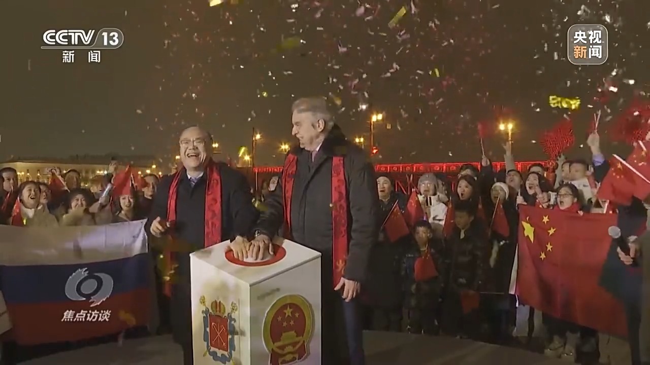 在俄羅斯第二大城市圣彼得堡,橫跨涅瓦河的冬宮橋在《春節(jié)序曲》的悠揚(yáng)旋律中徐徐開啟。橋身燈光閃亮的“中國紅”映照在河面上,給寒冷的冬夜帶來濃濃暖意和喜慶氣息,這是圣彼得堡首次為外國節(jié)日開橋。