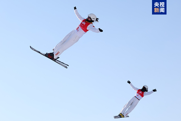 在自由式滑雪女子空中技巧雙人同步?jīng)Q賽中
