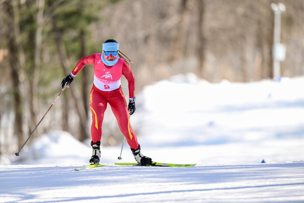 2月9日,中國選手巴亞尼·加林在第九屆亞冬會越野滑雪女子5公里(自由技術(shù))比賽中。新華社記者 連振 攝
