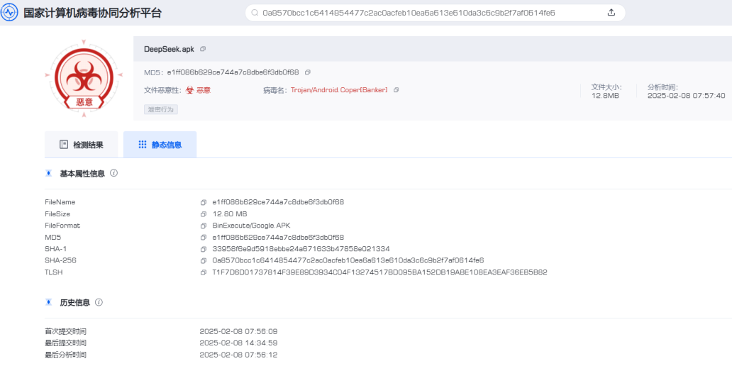 關(guān)于針對我國用戶的仿冒“DeepSeek”官方APP的手機木馬病毒的預(yù)警報告