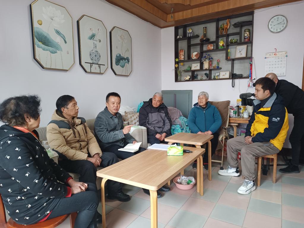 張義民(左三)在村民家中調(diào)研。(受訪者供圖)