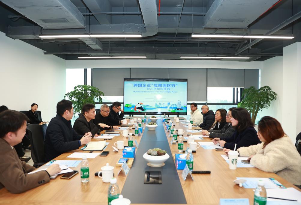 2月21日,部分跨國企業(yè)代表在成都新川創(chuàng)新科技園參加座談交流。新華社發(fā)